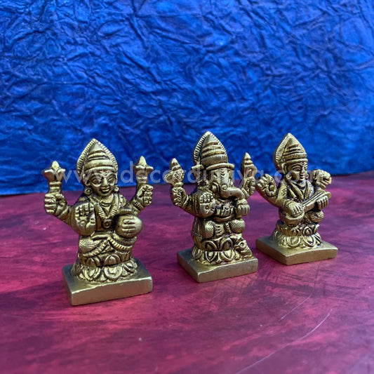 Lakshmi Ganesha Saraswathi - Brass - Height - 5.5 inches - LGSB01