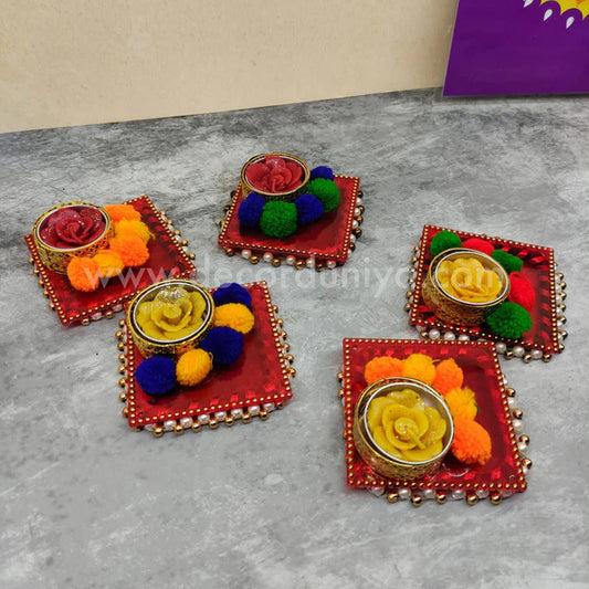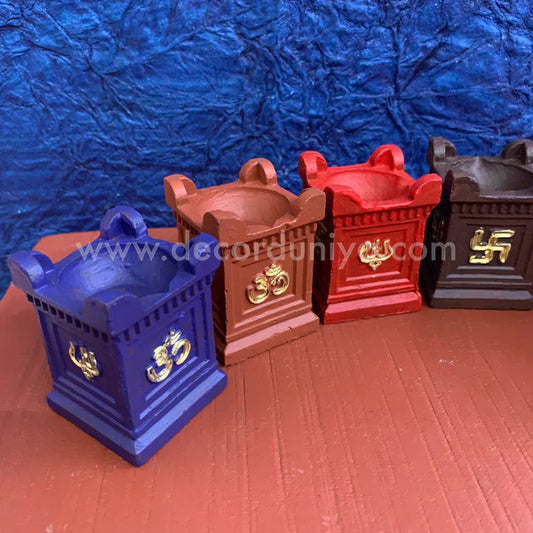 T Light with Clay Thulasi Maadam and wooden kolam base manai Size 3x3 inche-T03