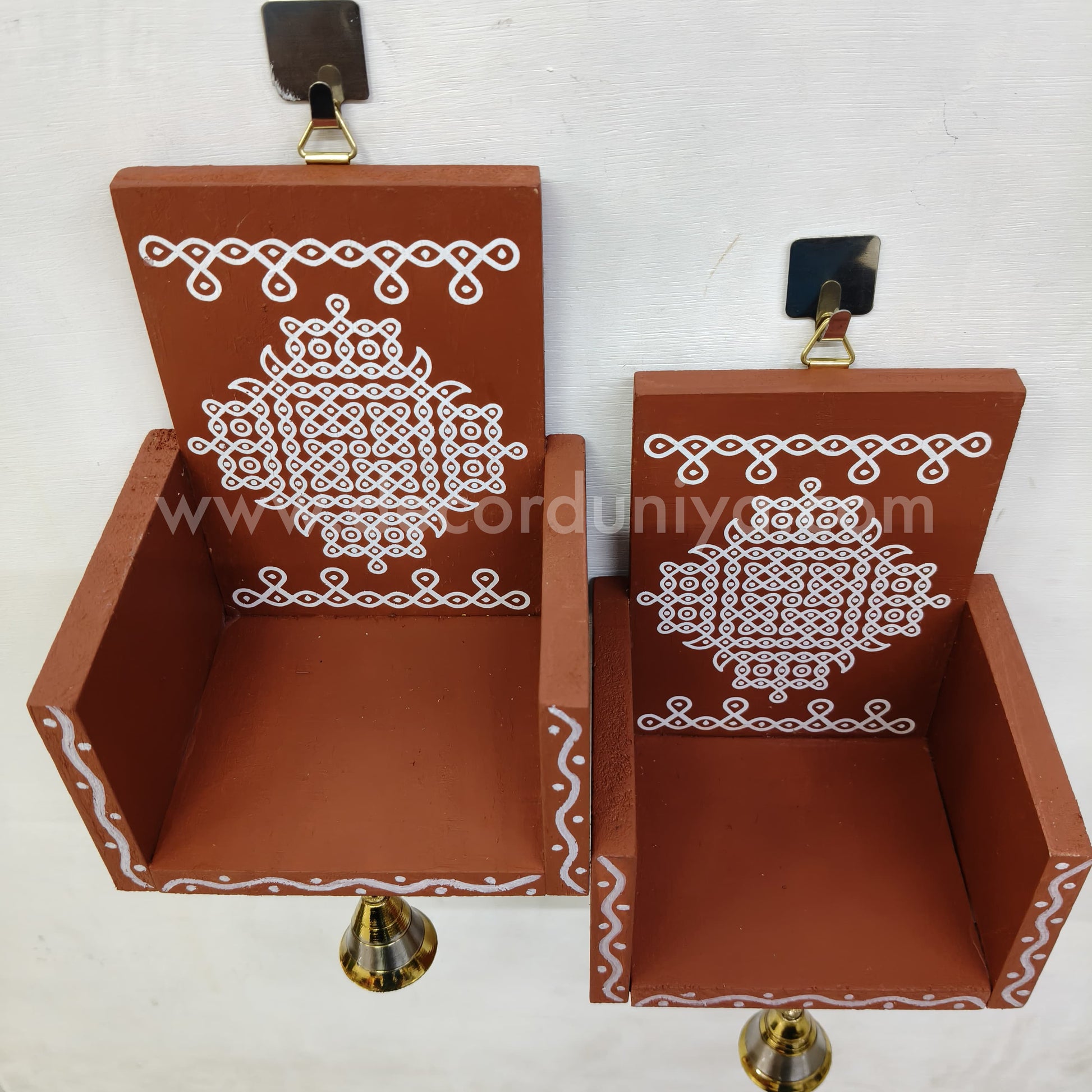 Closed type Wooden Kolam Wall Shelf Pair, Vilakku madam - CVM3