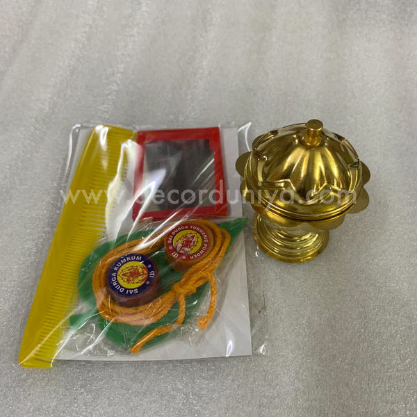 Brass kumkum chimzhil with sumangali set