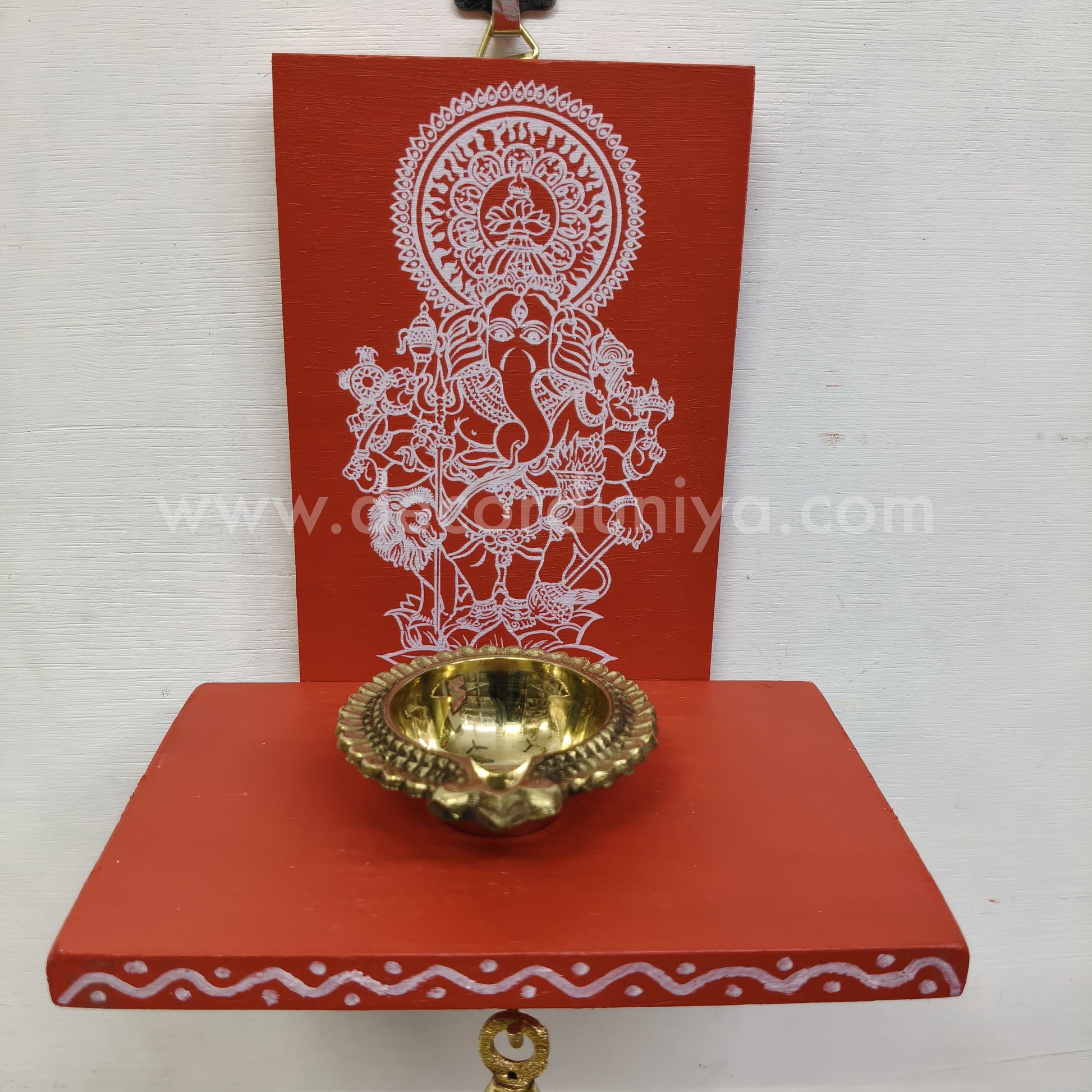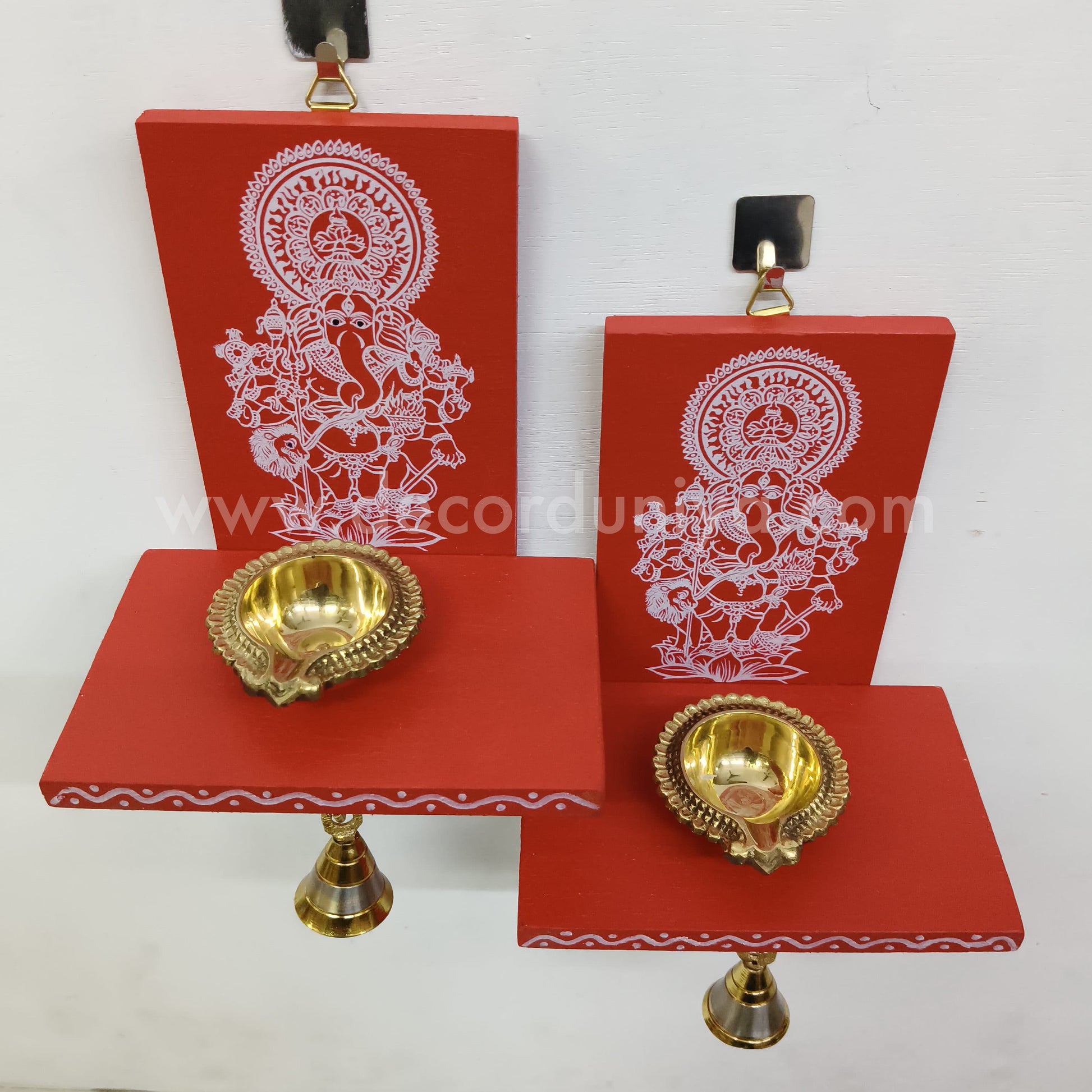 Wooden Ganesha Kolam Wall Shelf Pair, Vilakku madam - VMG1